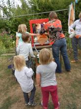 Solawi-Mitglied Sabine hat uns ihre manuelle Apfelpresse gezeigt und wir haben fleißig mit 6 kleinen und 7 großen Menschen geschnibbelt, gehäxelt, gepresst und gekocht! Bei strahlendem Sonnenschein gab es Waffeln zum stärken, ein Trampolin zum toben, zwischendrin immer ein Gläschen frischen Apfelsaft und am Ende noch mehr Apfelsaft und Apfelgelee für zu hause. Ein gelungener Nachmittag für uns alle. Hier ein paar Impressionen