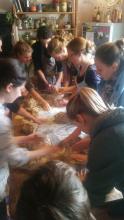 Zur letzten Aktion vom Projekt "Verwenden statt verschwenden" in diesem Jahr wurde fleißig eingeheizt. Bei rieselnden Schneeflocken saßen 12 Menschen in der Küche, kneteten, matschten, warteten und schnackten. Beim Brotbackworkshop lernten wir alles rund um den Sauerteig: Teigführung, Quellteig, Hauptteig, "was sind eigentlich die Type?", optimale Temperaturen, frühzeitige Planung usw.