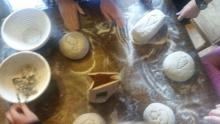 Aus dem zweiten Ansatz (Weizensauerteig) formten wir Ciabatta-Brote, lernten die dazugehörige "Knet-Art". Dann hieß es wieder: warten.