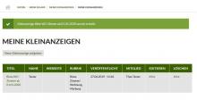 Nach dem Speichern seht ihr dann eure Kleinanzeige in der Tabelle "Meine Kleinanzeigen".