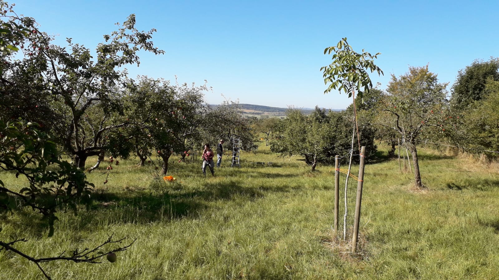 wurden die ersten Äpfel auf der Streuobstwiese in Heskem geerntet und ein Teil davon zu den "Erpressern" in Niederweimar gefahren. Noch ist nicht für jedes Mitglied ein 5-Liter-Saftkarton da; das wird dann hoffentlich mit der zweiten Aktion im Oktober (Ankündigung im Newsletter!) geschafft werden.