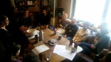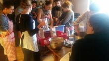 Zur letzten Aktion vom Projekt "Verwenden statt verschwenden" in diesem Jahr wurde fleißig eingeheizt. Bei rieselnden Schneeflocken saßen 12 Menschen in der Küche, kneteten, matschten, warteten und schnackten. Beim Brotbackworkshop lernten wir alles rund um den Sauerteig: Teigführung, Quellteig, Hauptteig, "was sind eigentlich die Type?", optimale Temperaturen, frühzeitige Planung usw.