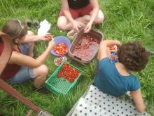 Nachdem der Einsatz im März leider nicht stattfinden konnte, trafen sich dafür am letzten Samstag im April umso mehr Menschen auf dem Acker: 14 Erwachsene und 2 Kinder waren da und mit so vielen fleißig Mitmachenden war die Arbeit schneller getan als gedacht. Die Aufgabe: Hacken bei den Erdbeeren. Das Ergebnis: Nach nur 2 1/2 Stunden war das Beikraut entfernt. So können wir uns (wenn auch das Wetter mitspielt) auf ganz viele Erdbeeren freuen!